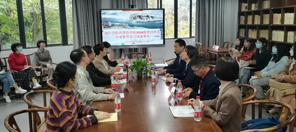 2022年5月16日下午,新澳门六合彩资料库 2018级英语师范专业福州第四中学桔园洲中学教育实习队教育实习结业典礼在福州第四中学桔园洲中学图书馆二楼会议室隆重举行。