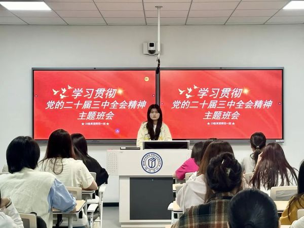 本次活动由2023级英语(师范)1班团支书郑佳怡同学主持,向同学们讲述了学习贯彻党的二十届三中全会精神的重要意义。